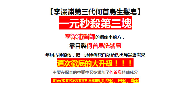 第三代李深浦何首烏中藥生髪、黑髪皂